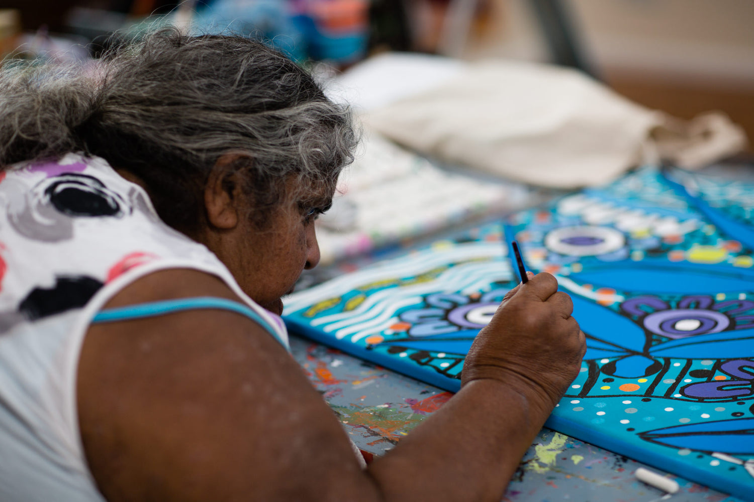 Our murals and paintings are shaped by our connection to Country and community, and can be seen across the Illawarra and Shoalhaven in schools, hospitals, parks, galleries and public spaces. Each artwork is a way of teaching, connecting and sharing culture with the wider community.