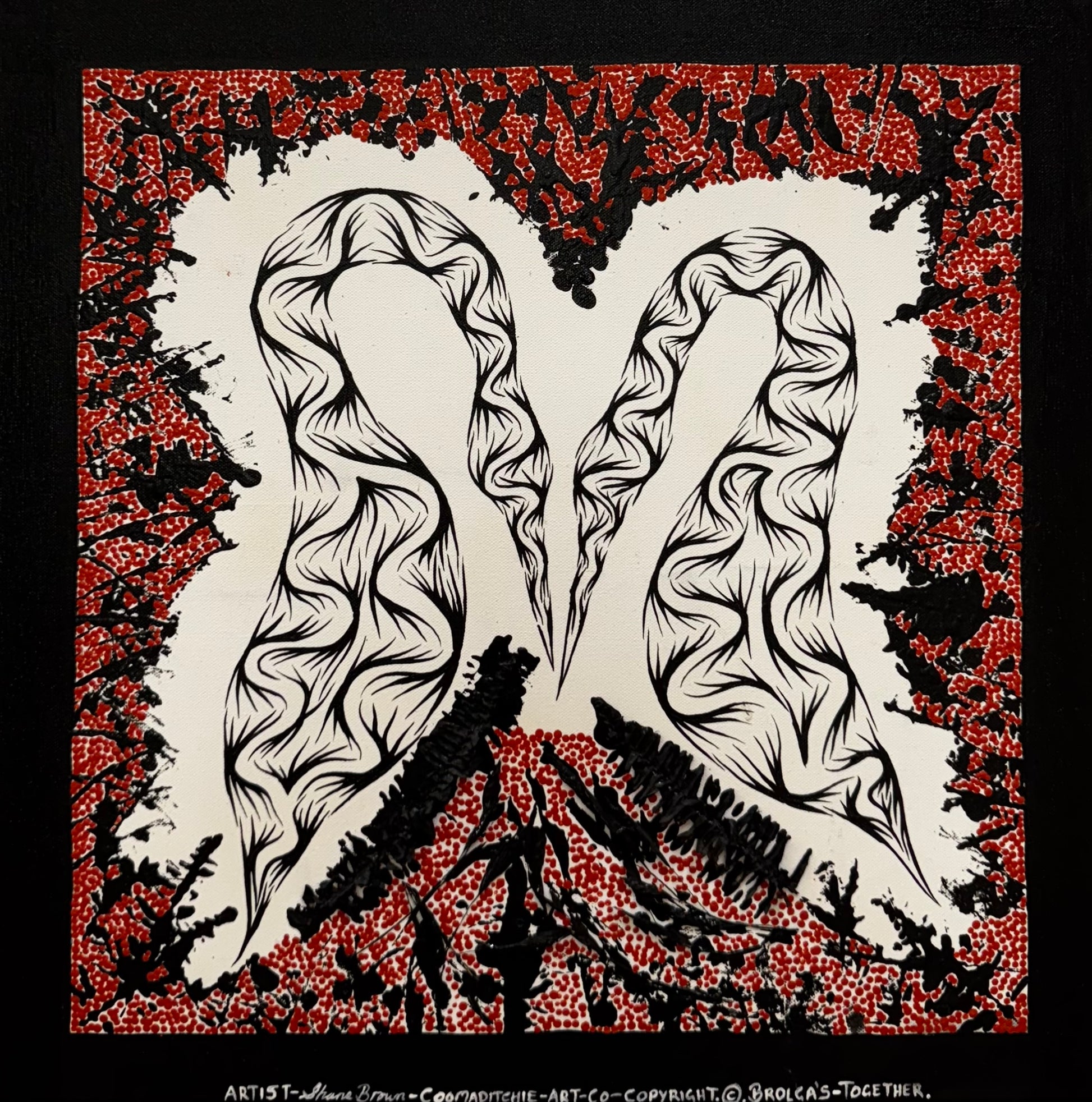 About the artwork: The hug birds of dance – our beautiful creatures of the bush. They are the most graceful dancers, especially when they mate.